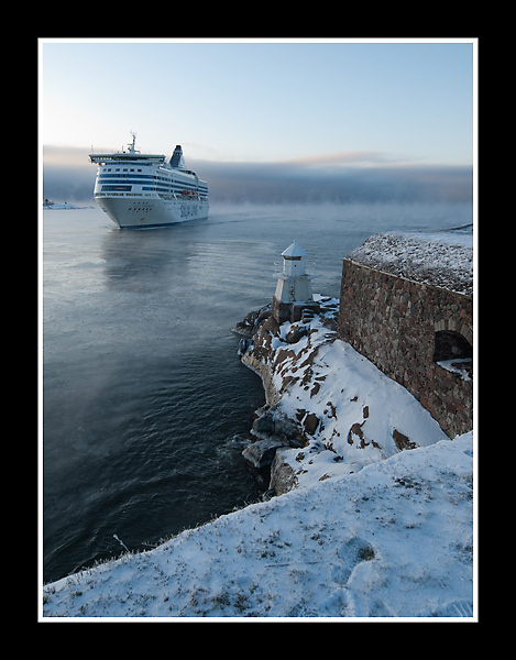 Silja Line´s ferry on its way from Stockholm to Helsinki is approaching Suomenlinna beacon.
