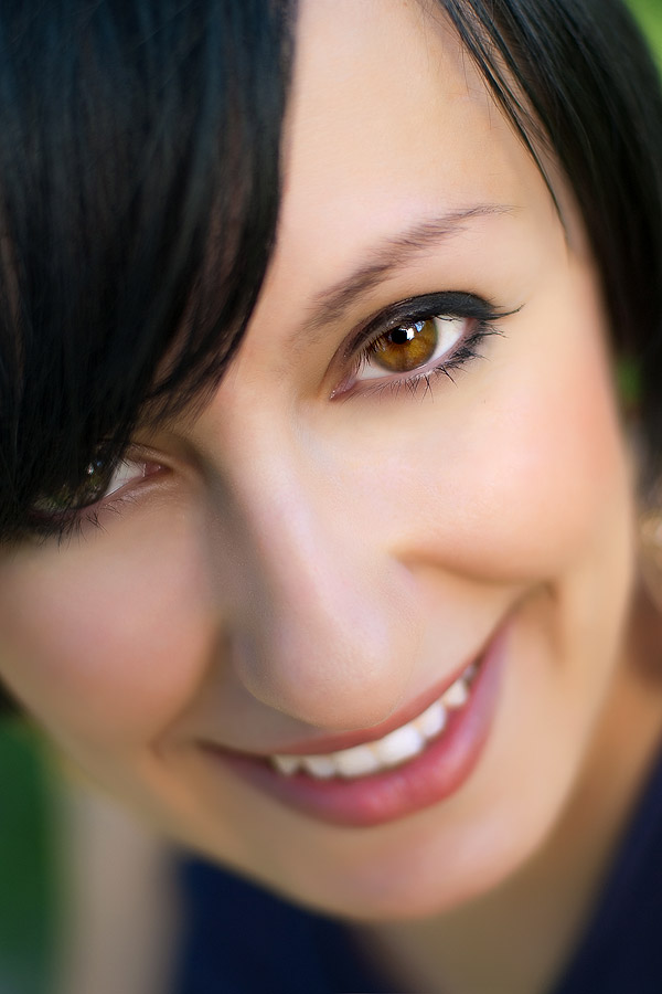 When I first looked at it, I thought that you might have artificially blurred it in photoshop, but then I saw that you shot it with the Sigma 30MM wide open. The other consequence of using that lens is that her face is distorted and her nose appears to be rather large.