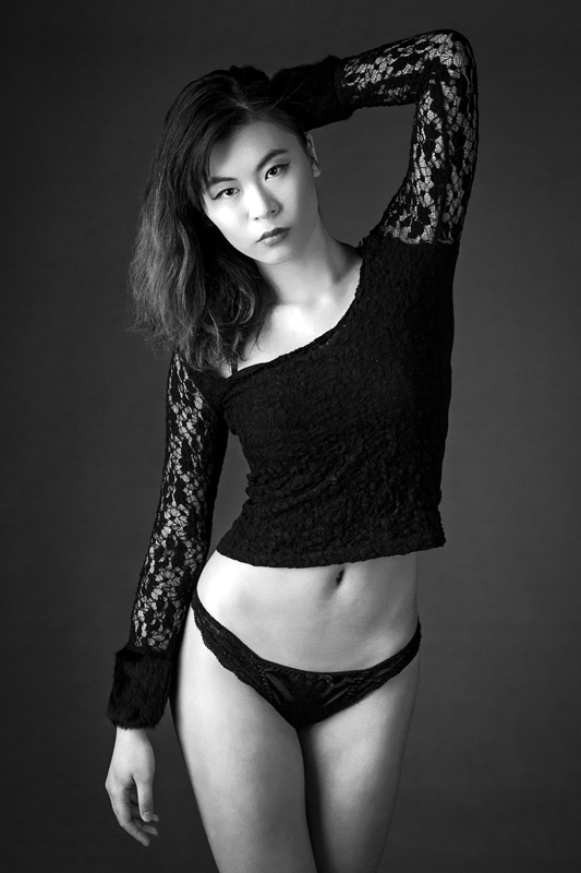 Greg I think your lighting is very good and the b&w really makes the shot work, not to mention the model sets the mood.