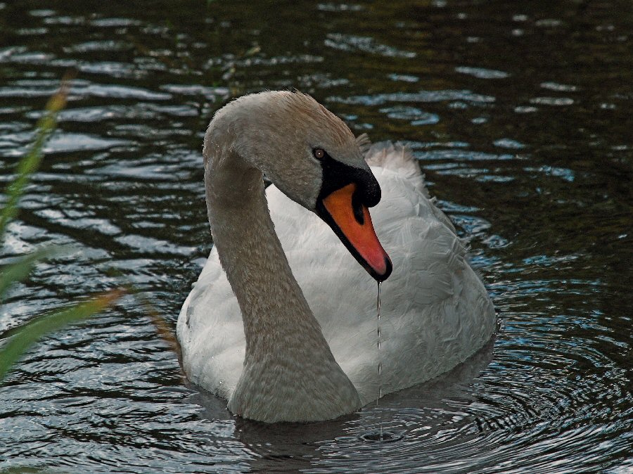 It seems the image was oversharpened. Also the noise is quite visible. Overall it gives the swan some dragon-like look. Is it a flash in his eye? -