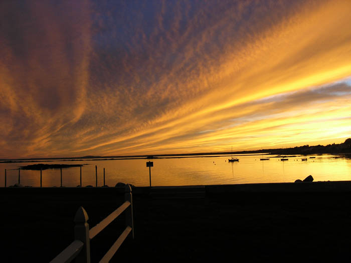 Very nice evening tones in the sky Dave. You have quite a tilt to the left, easily corrected. Like the lines and layers in the sky... good detail.