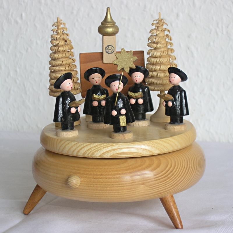These are Kurrende Singers on a music box. This traditional handcraft is made in the Erz Mountains in Saxonia. Merry Christmas!